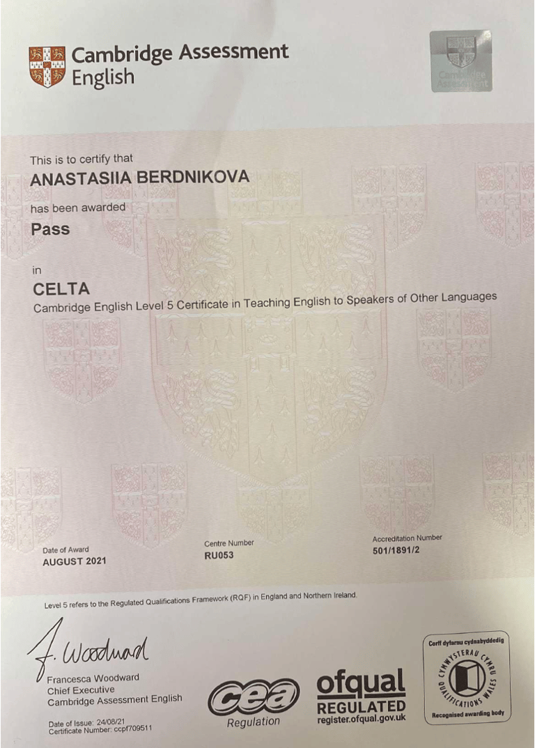 My name is Anastasia, and I’m an English and Russian teacher with over 10 years of experience teaching students from all around the world. My students come from the USA, Europe, China, Russia, Brazil, and many other countries.